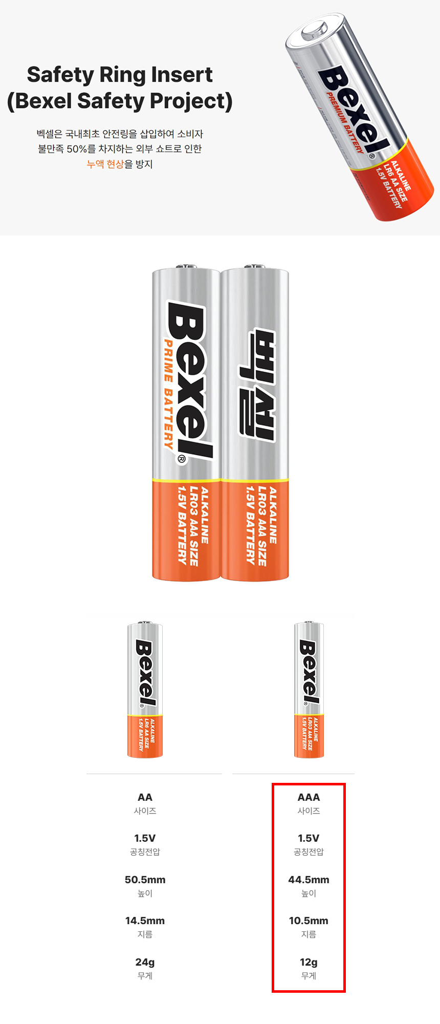 [벡셀] 알카라인 LR03 1.5V (AAA 2입)