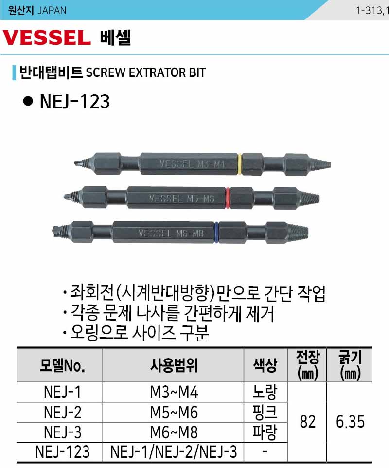 [베셀] 반대탭비트세트 NEJ-123 3PCS